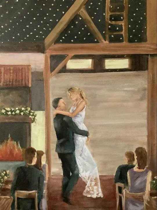 Katy is a traditional artist that sets up a canvas and easel and entertains guests by painting live weddings. Katy paints that special moment at your wedding. Something that can entertain the guest but also something you can hang on your wall and smile at everytime you walk by. Katy enjoys the entire process. Whether this means meeting with clients, arriving on the big day, creating her composition, deciding the color of the palette, and incorporating her clients wishes and visions into a work of art.